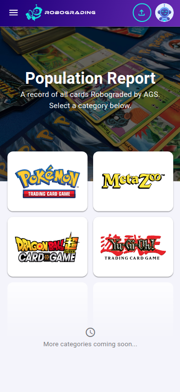 Now you can see POP report of all TCGs we grade. Previously you could see POP of Pokemon category only. POP report is
