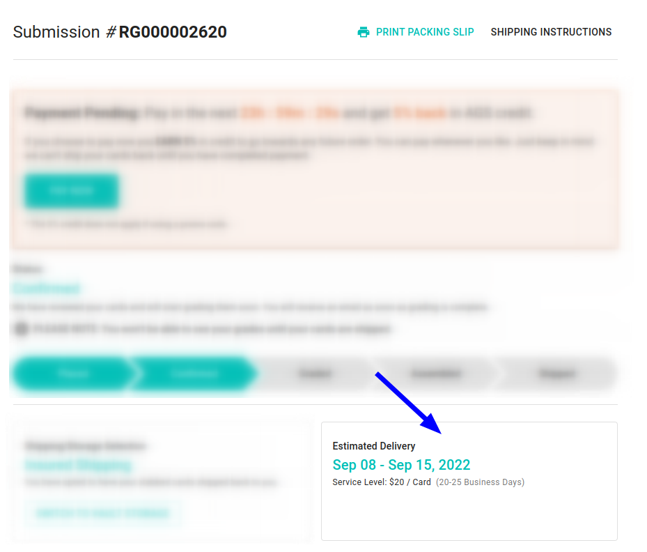 Estimated Delivery Date (shown on order detail page)