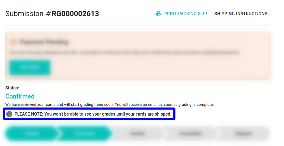 Pre-Shipment Customer Note (shown on order detail page, to make it more clear that grades become available after order is shipped)