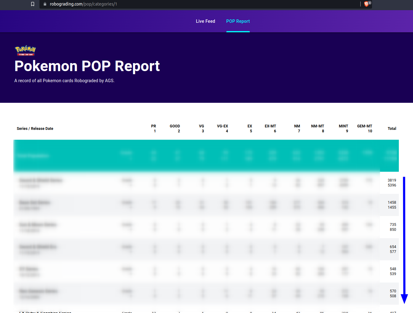 POP - Order by number of cards graded